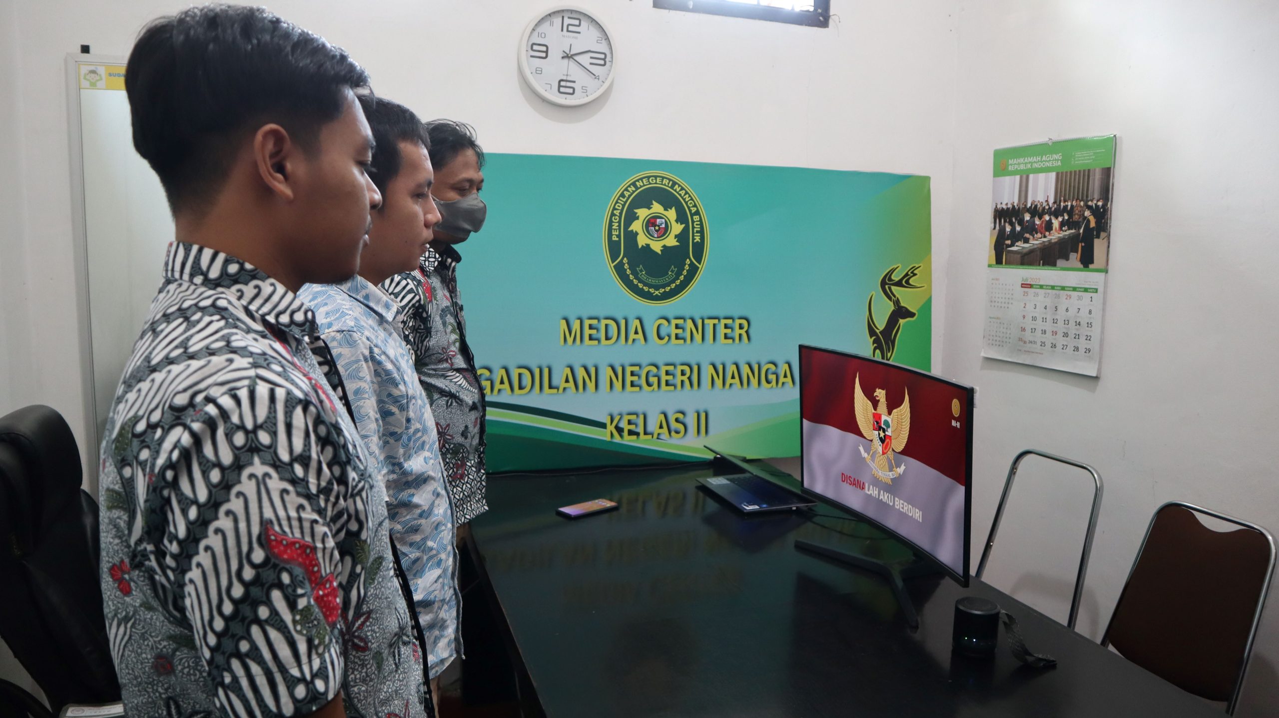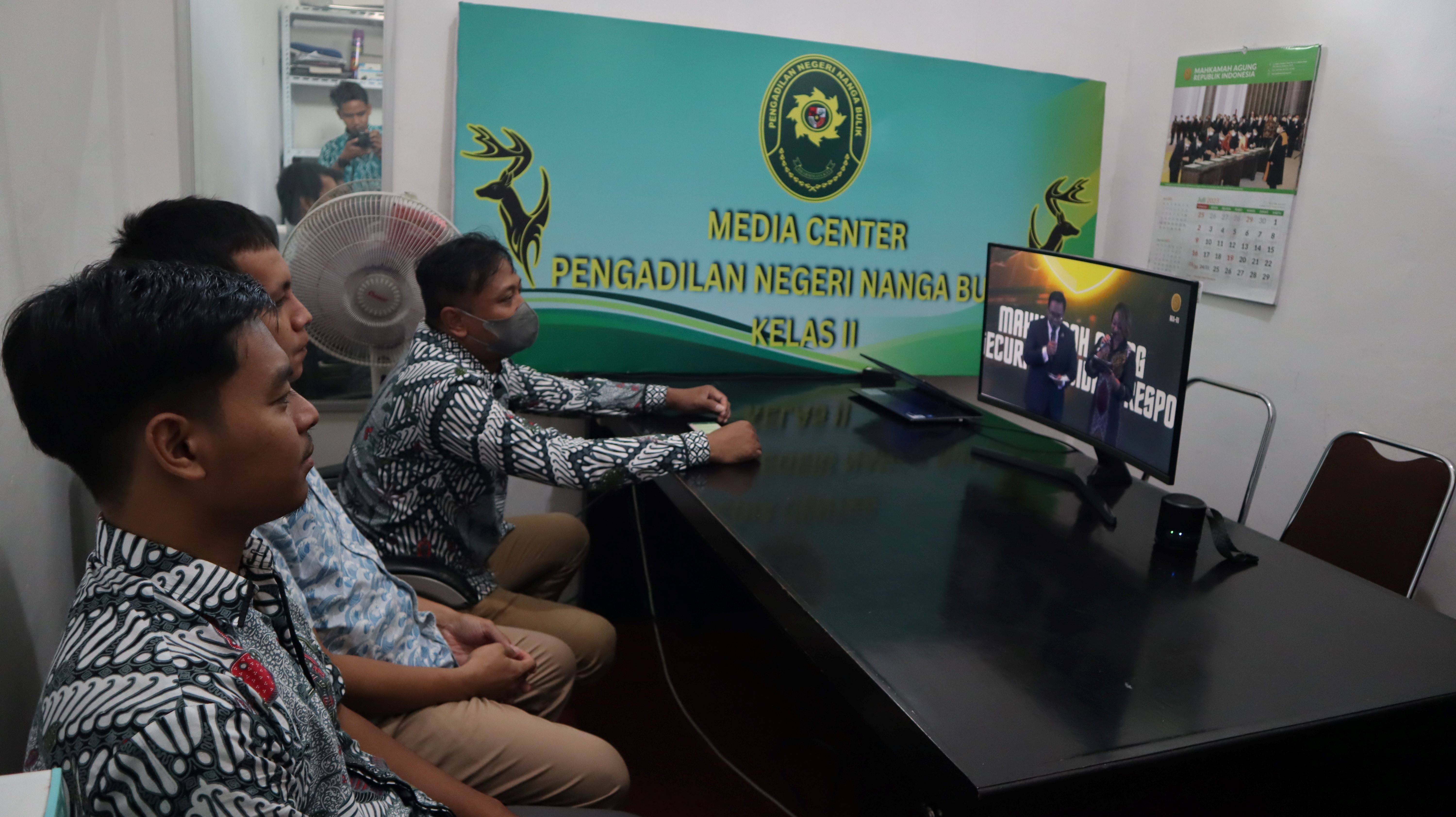 Sekretaris Pengadilan Negeri Nanga Bulik Aang Sutopo, S.H., Panmud Hukum Ade Andiko, S.H., dan Staff TI Pengadilan Negeri Nanga Bulik menyaksikan kegiatan launching Computer Security Incident Response Team Mahkamah Agung (MA CSIRT) melalui kanal Youtube Mahkamah Agung RI.