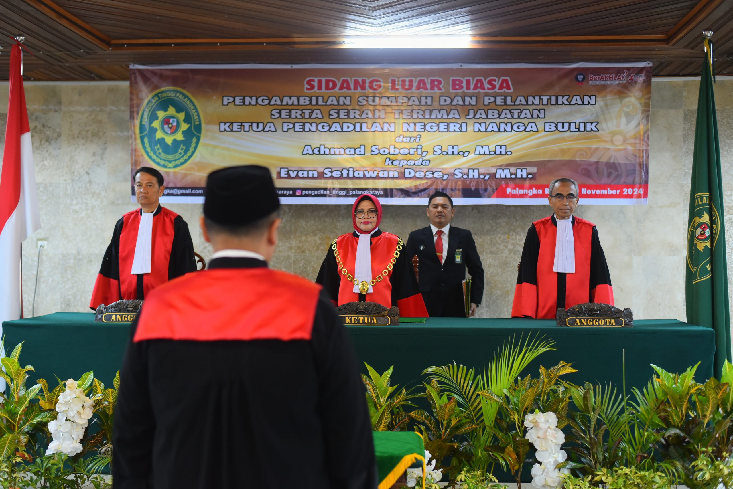 Palangka Raya, 21 November 2024 | Pengambilan Sumpah Jabatan dan Pelantikan Serta Serah Terima Jabatan Ketua Pengadilan Negeri Nanga Bulik