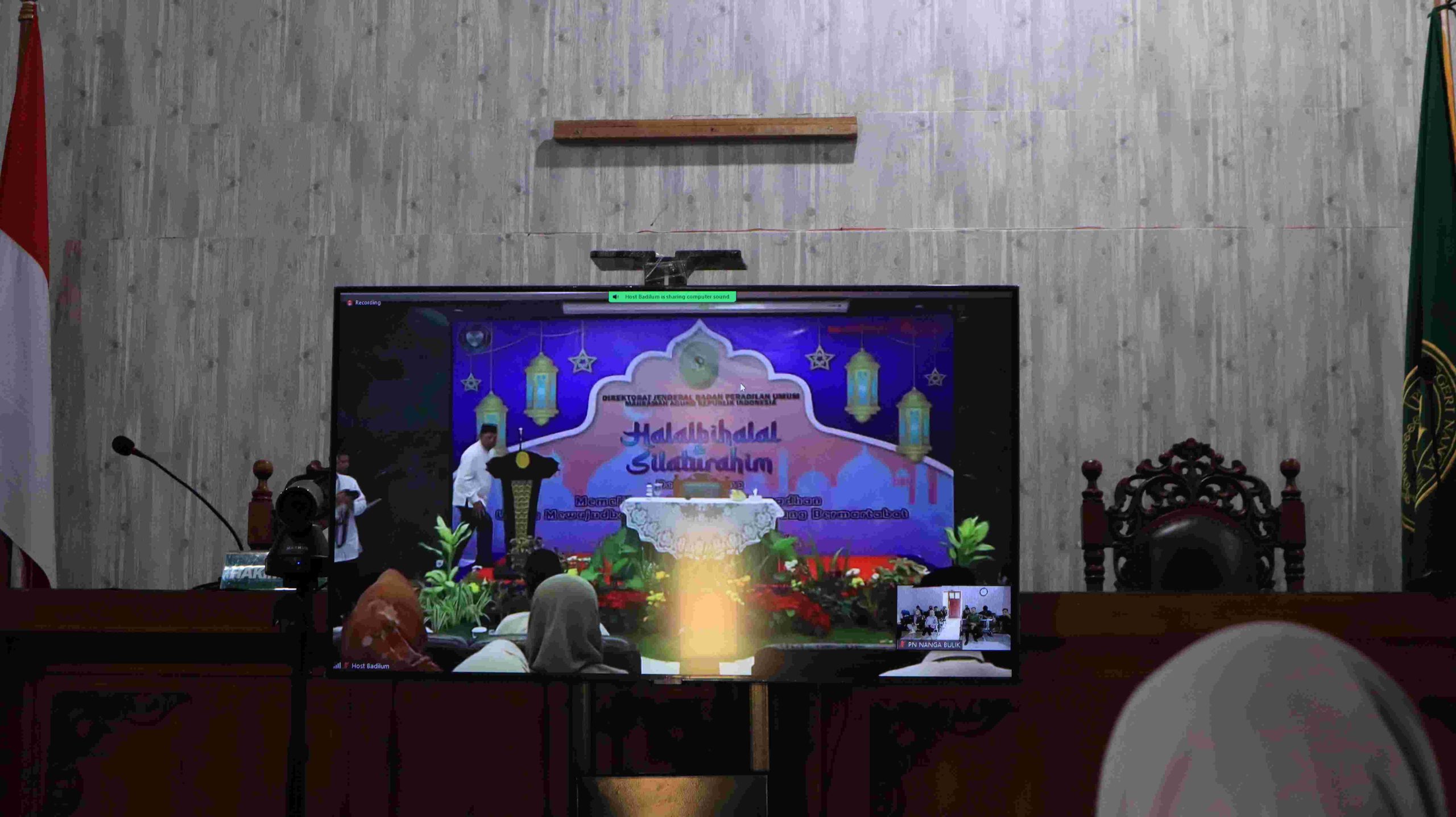 Hakim, Panitera, Sekertaris, Pegawai dan PPNPN Pengadilan Negeri Nanga Bulik Kelas II mengikuti Acara Halal Bi Halal dan Silaturahim yang diadakan oleh Direktorat Jenderal Badan Peradilan Umum secara Daring melalui zoom meeting.