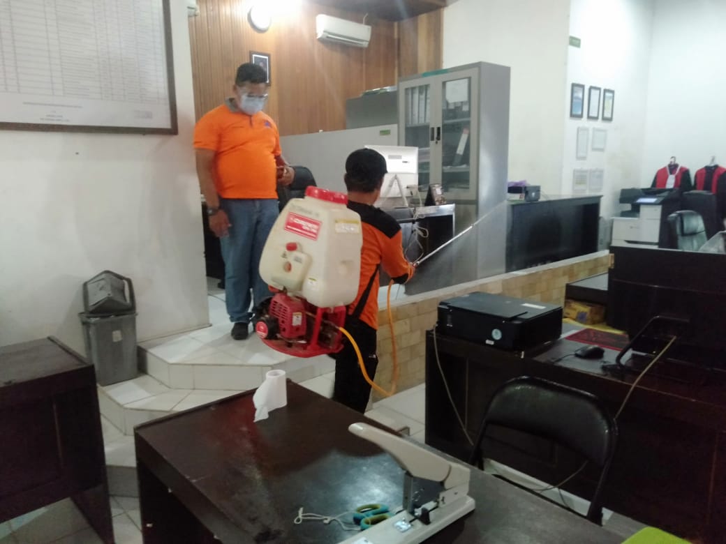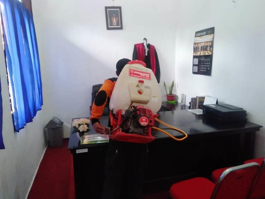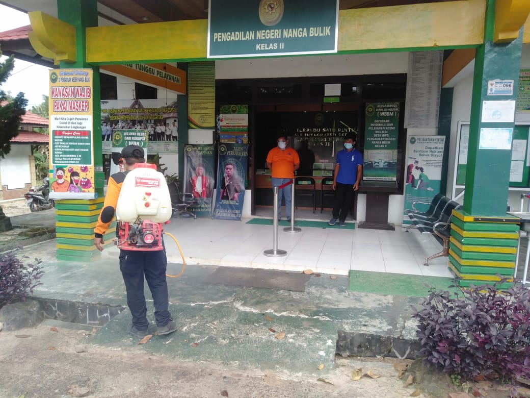 Jum’at, 11 Desember 2020 Penyemprotan Disinfektan yang dilakukan oleh Pemerintah Badan Penanggulangan Bencana Daerah (BPBD) pada Pengadilan Negeri Nanga Bulik. Karena semakin maraknya dan banayaknya masyarakat dahkan instansi yang terkena paparan dari Corona Virus Disease atau Covid 19 maka Pengadilan Negeri Nanga Bulik meminta kepada BPBD kab. Lamandau untuk melakukan penyemprotan disinfektan di area kantor Pengadilan Negeri Nanga Bulik sebagai bentuk dan upaya pencegahan Corona Virus Disease atau Covid 19 agar warga Pengadilan Negeri Nanga Bulik tetap sehat dan dapat melayani para pencari keadilan.