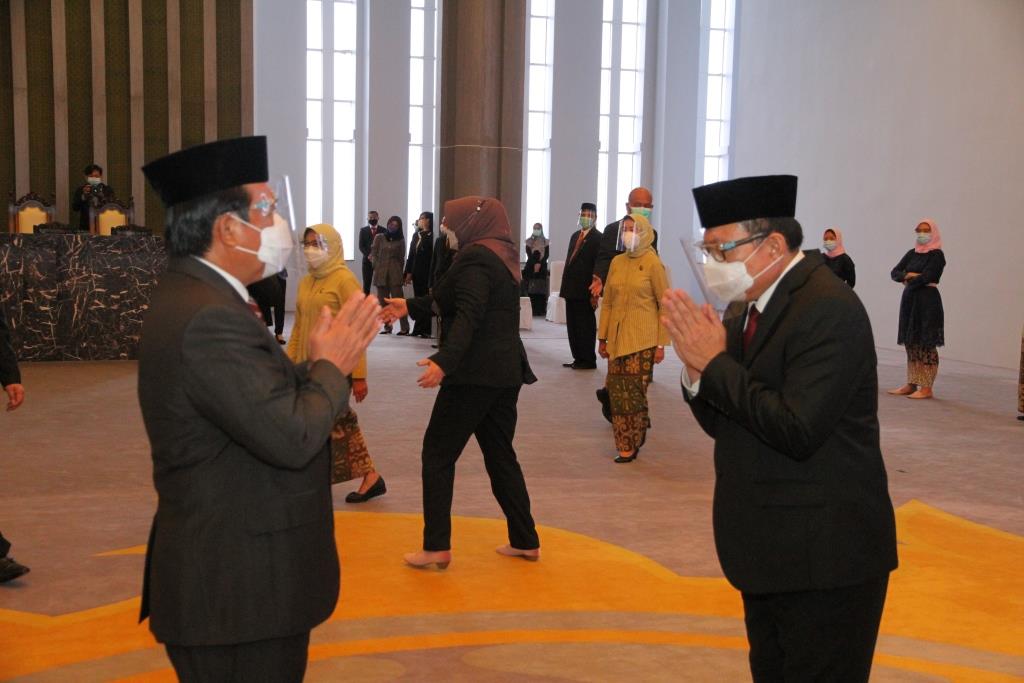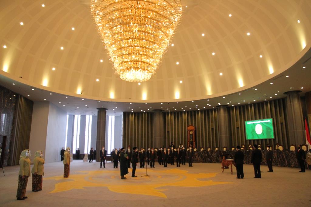 Acara pelantikan ini, juga dihadiri oleh Wakil Ketua Mahkamah Agung Bidang Non Yudisial, Para Ketua Kamar, Pejabat Eselon I & 2, Ketua Umum Dharmayukti Karini, dengan menerapkan protokol kesehatan yang ketat. (Humas)
