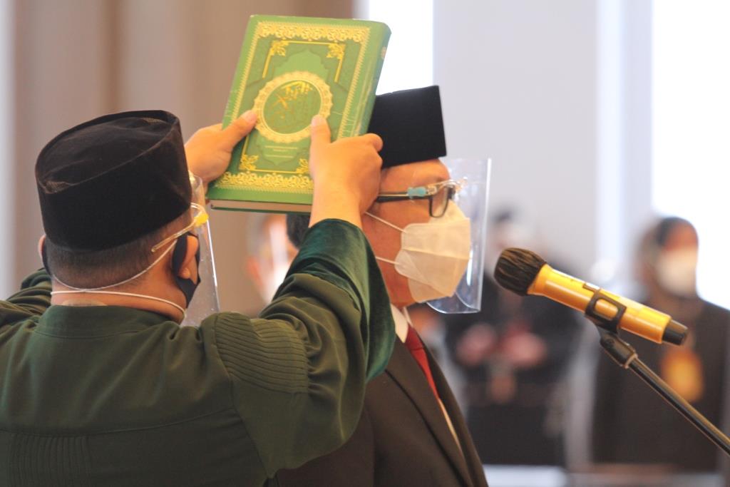 “Demi Allah saya bersumpah, bahwa saya akan memenuhi kewajiban sebagai Sekretaris Mahkamah Agung dengan sebaik-baiknya dan seadil-adilnya, memegang teguh Undang-Undang Dasar Negara Republik Indonesia Tahun 1945, dan menjalankan segala peraturan perundang-undangan dengan selurus-lurusnya menurut Undang-Undang Dasar Negara Republik Indonesia Tahun 1945, serta berbakti pada nusa bangsa”, ucap mantan Direktur Pembinaan Administrasi Badan Peradilan Agama dihadapan ketua Mahkamah Agung
