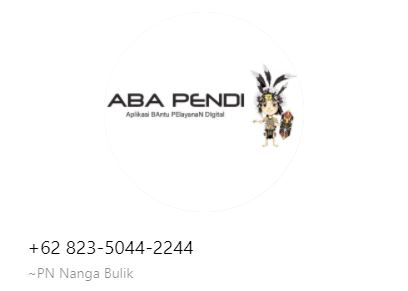 Aplikasi Virtual Assistant ABA PENDI (Aplikasi BAntu PElayanaN DIgital) merupakan aplikasi berbasis WhatsApp yang berguna untuk masyarakat pencari keadilan untuk dapat mengetahui cara pendaftara (ecourt), eraterang, status dan detail perkara. Virtual Assistant tersebut bisa diakses melalui link https://wa.me/6282350442244 atau dapat menghubungi nomor WhatsApp di 082350442244. Kemudian ketik info, help atau bantuan untuk mengakses menu utama.
