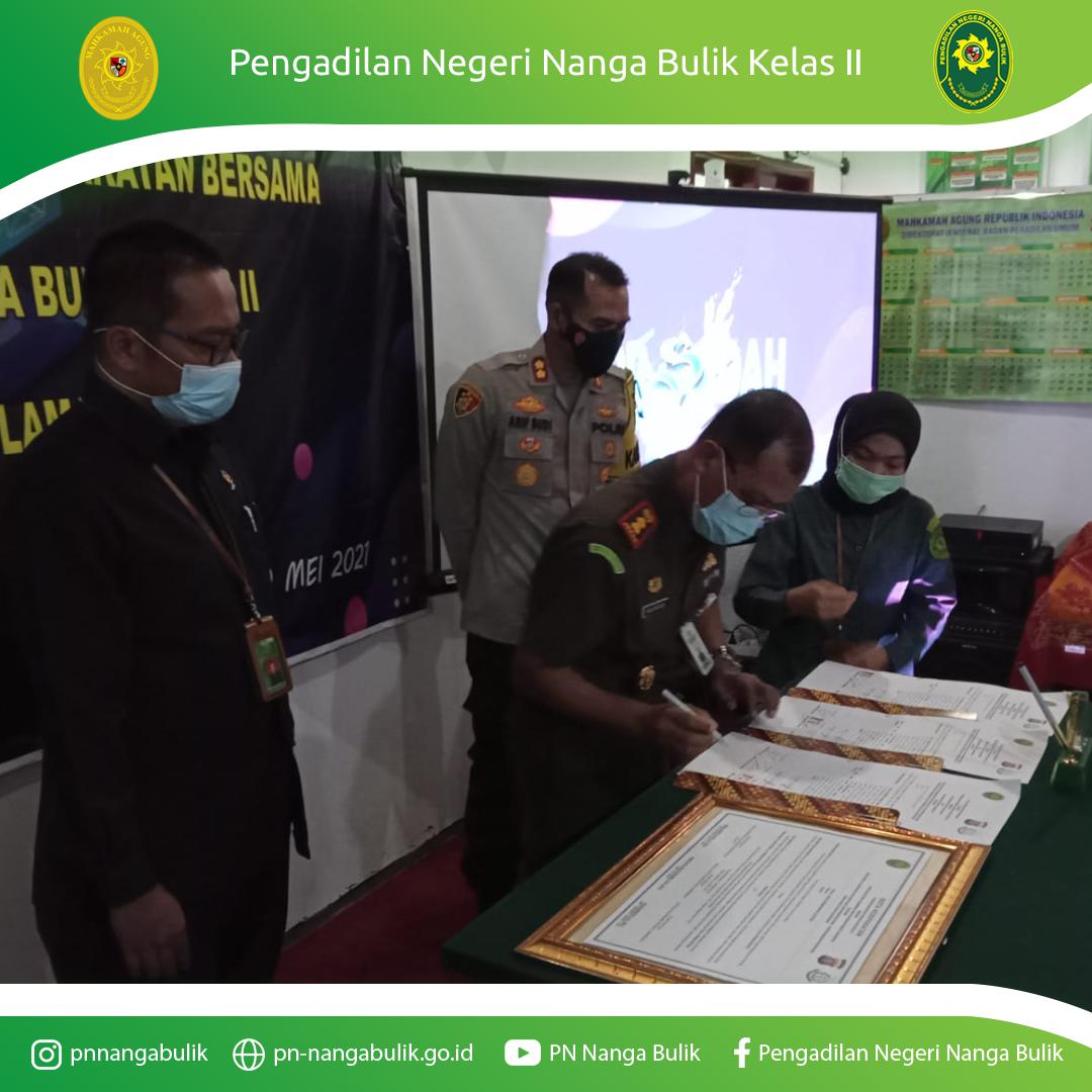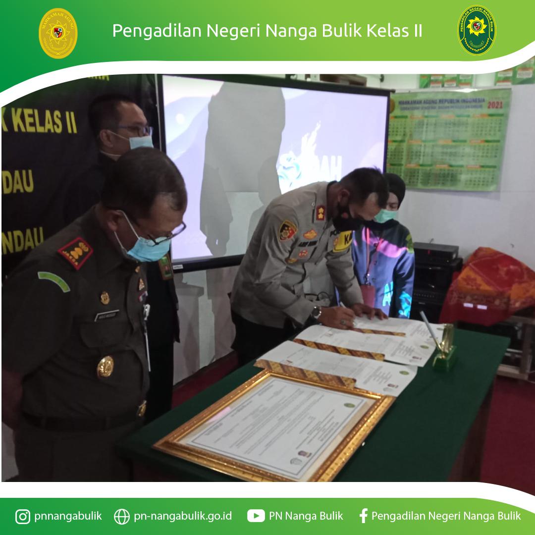 Acara ditutup dengan penanda tanganan MOU/Perjanjian Bersama antara Pengadilan Negeri Nanga Bulik Kelas II dengan Kepolisian Resor Lamandau dan Kejaksaan Negeri Lamandau.