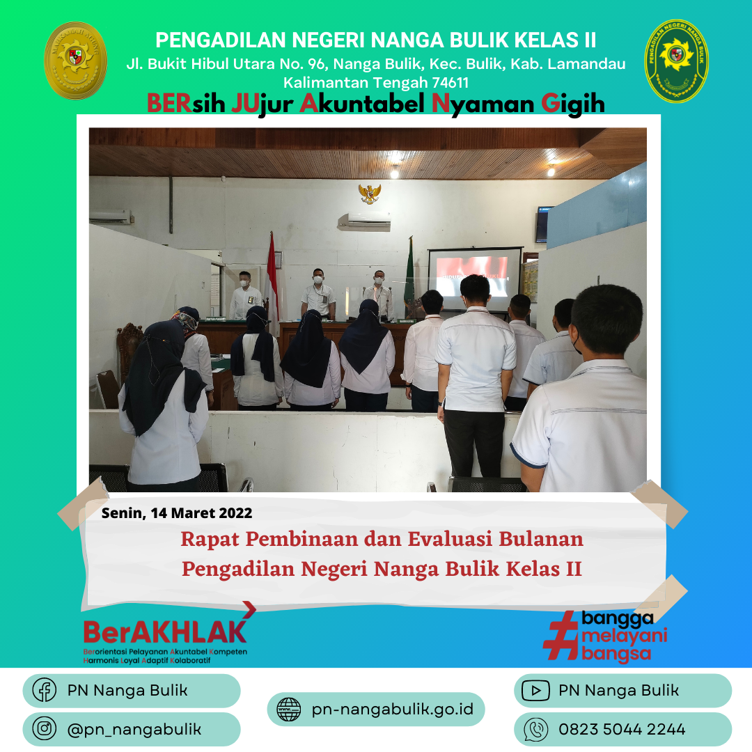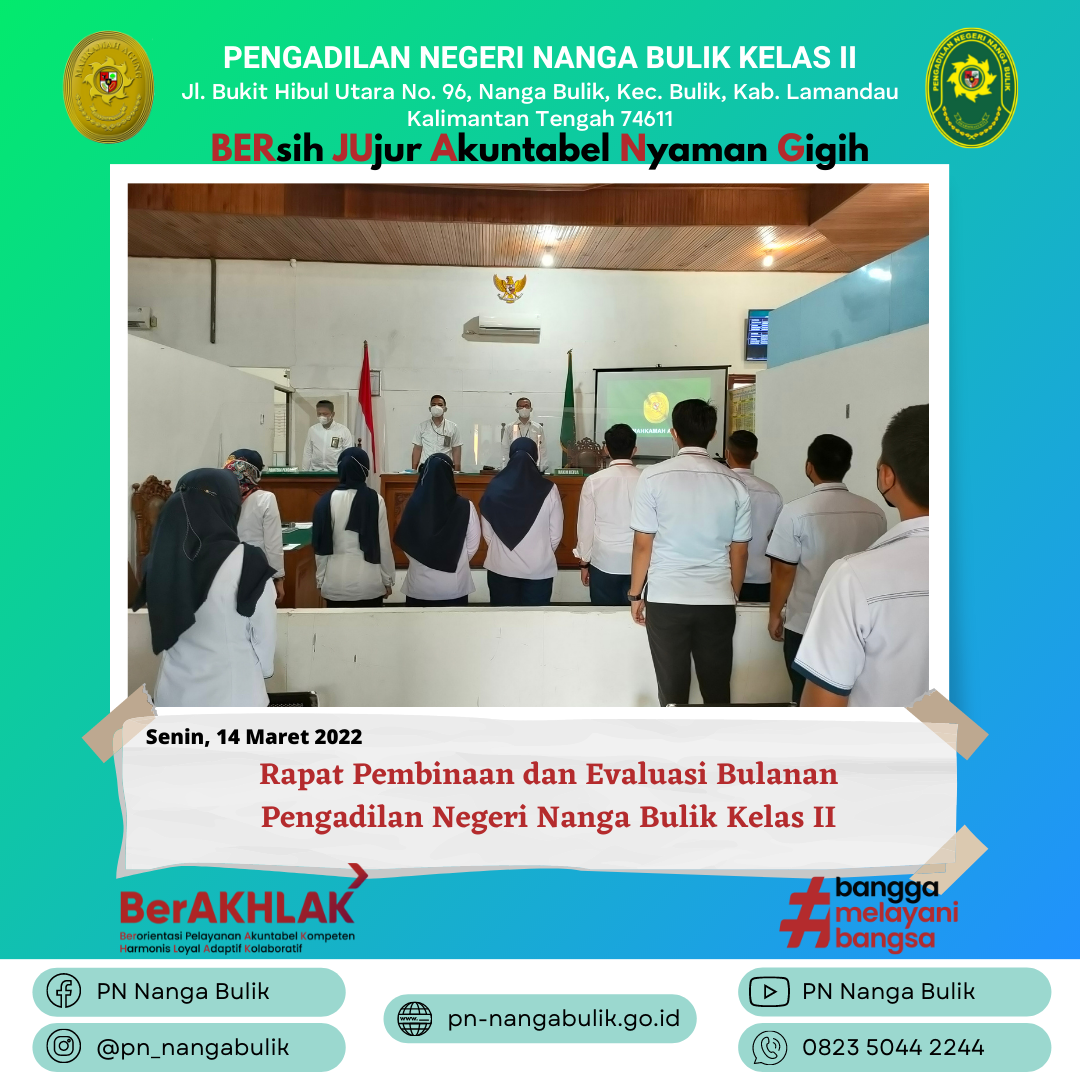 Senin, 14 Maret 2022 | Rapat Pembinaan dan Evaluasi Bulanan Pengadilan Negeri Nanga Bulik Kelas II