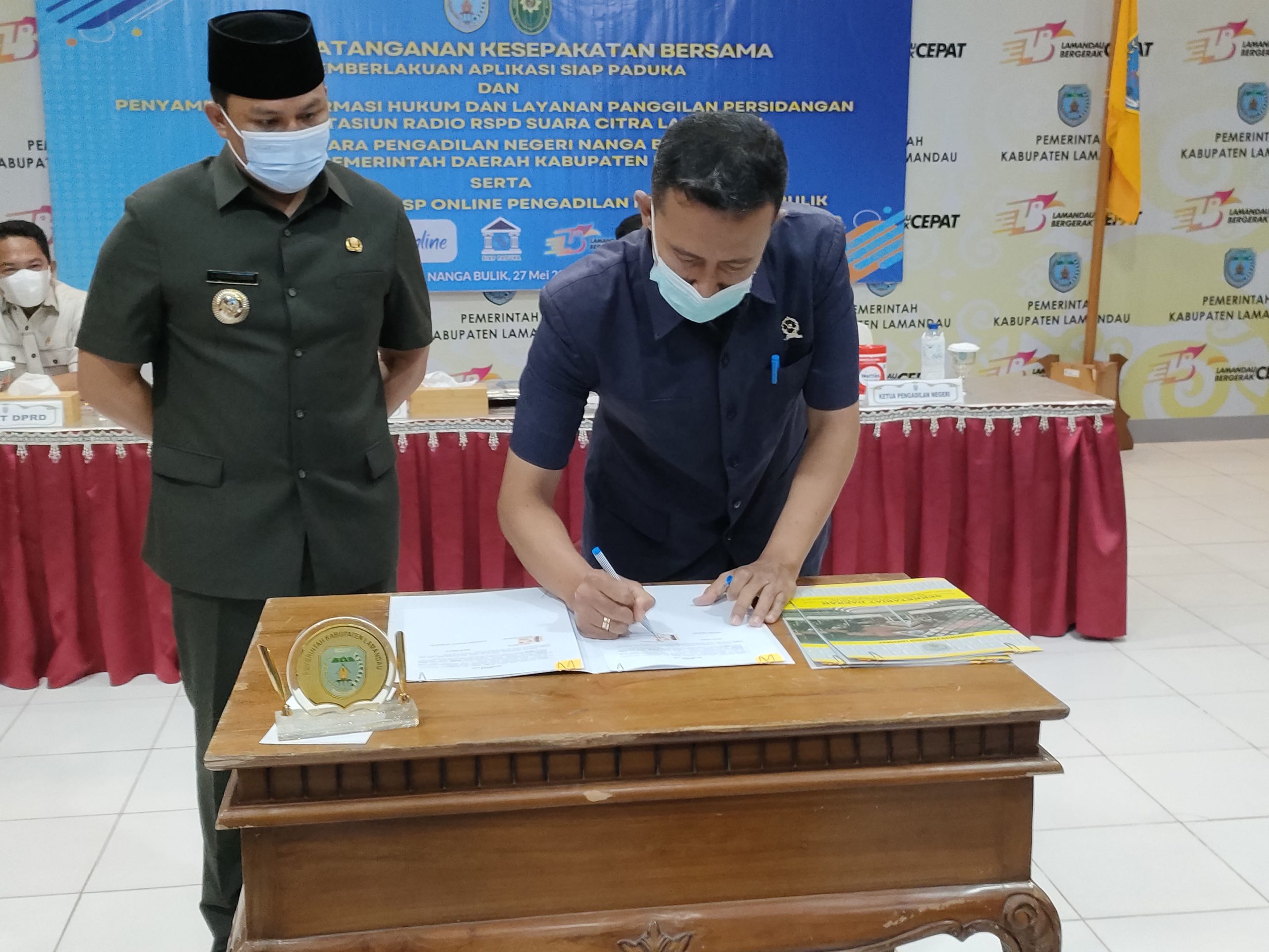 Sebagai upaya meningkatkan berbagai layanan Pengadilan agar lebih memudahkan bagi masyarakat, Pengadilan Negeri Nanga Bulik pada Jumat, 27 Mei 2022 melakukan penandatanganan Perjanjian Kerjasama dengan Pemerintah Daerah Kab. Lamandau.