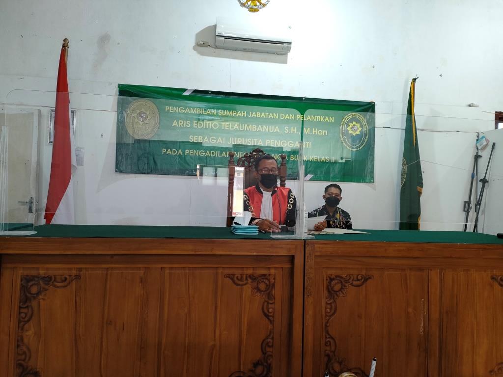 Kamis, 23 Juni 2022 | Pengambilan Sumpah Jabatan dan Pelantikan ARIS EDITIO TELAUMBANUA, S.H, M.Han sebagai Jurusita Pengganti Pengadilan Negeri Nanga Bulik Kelas II