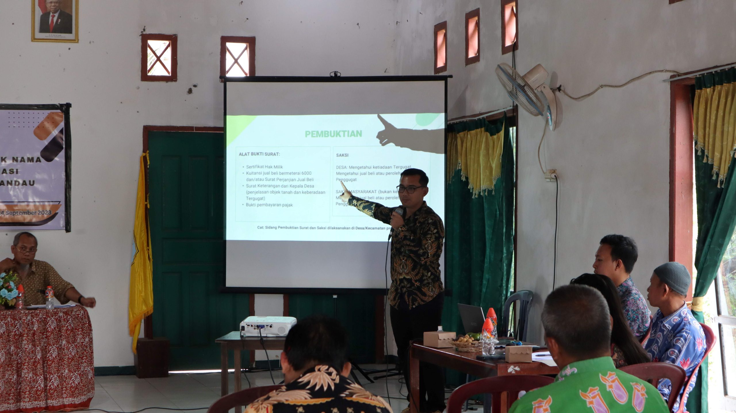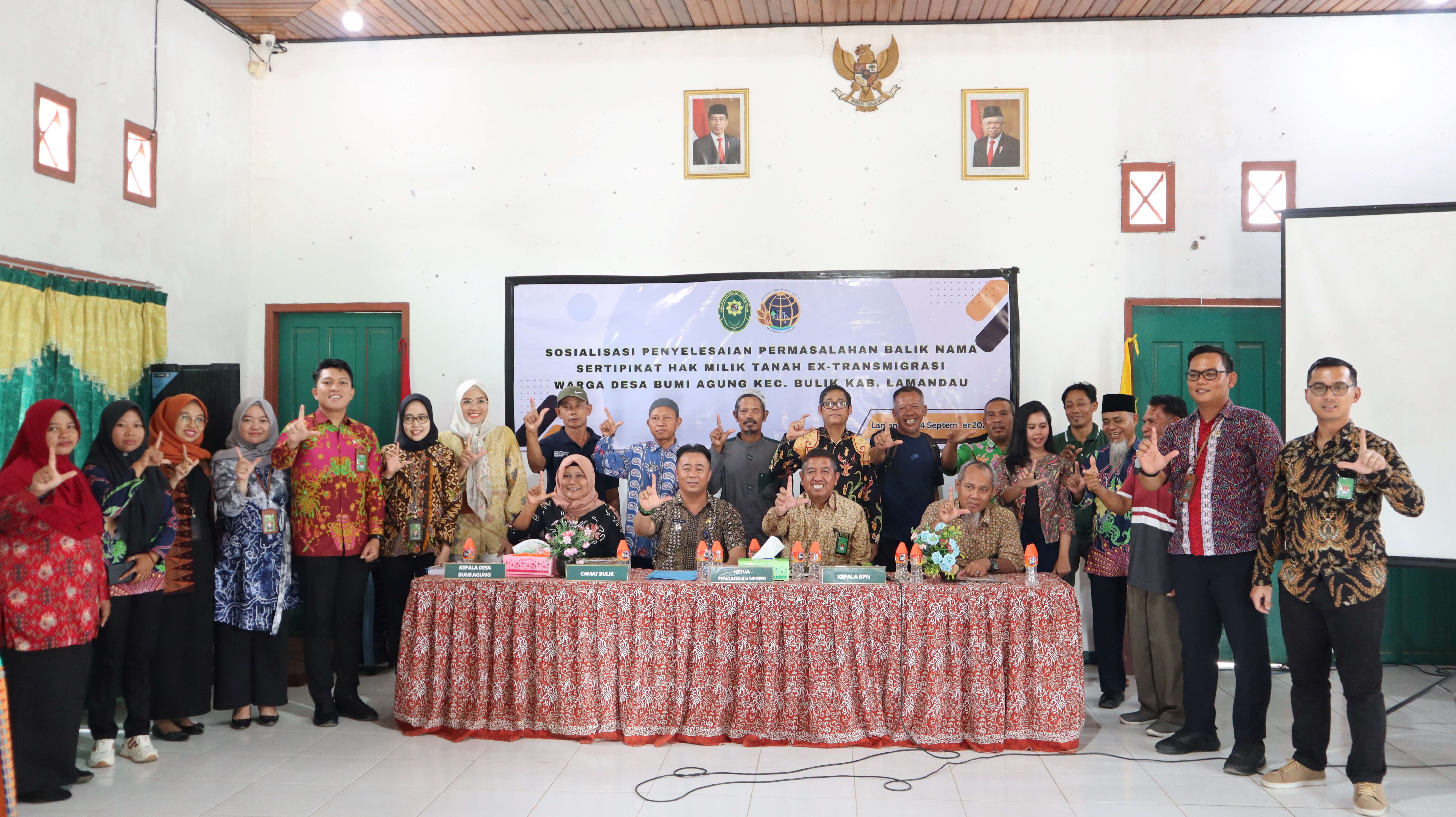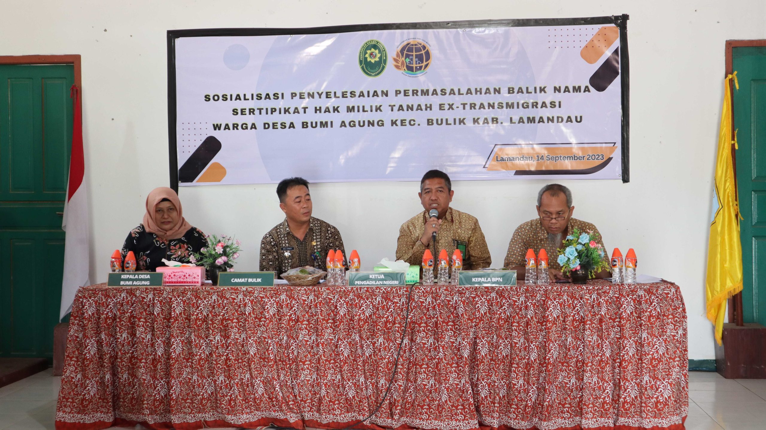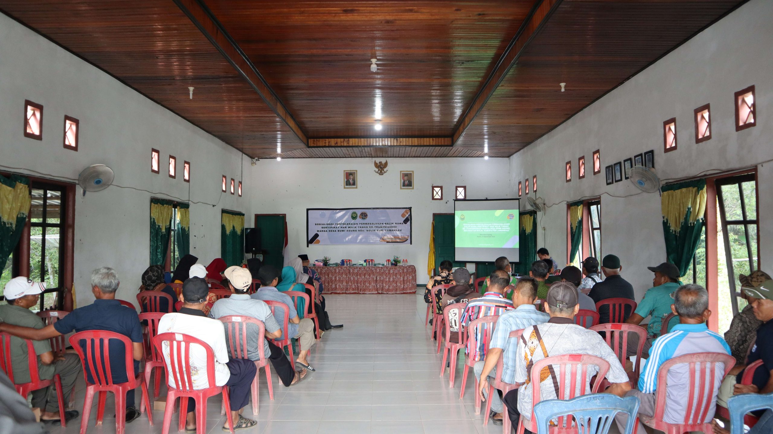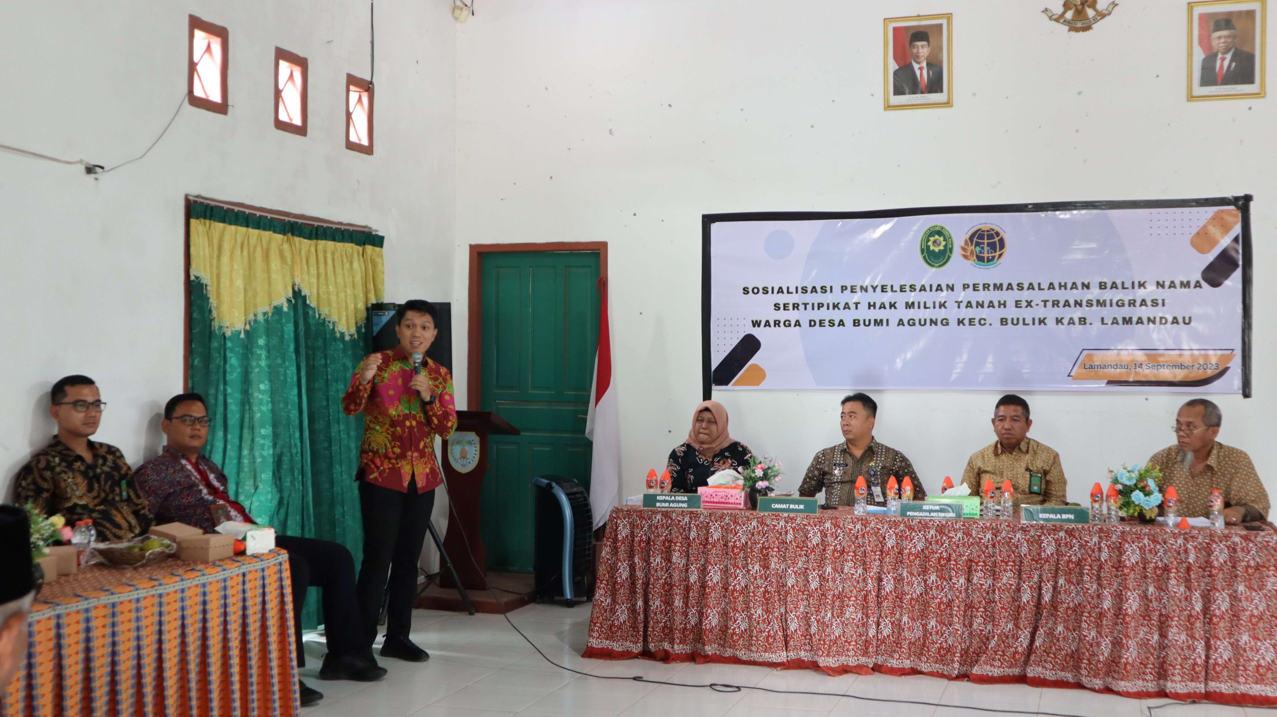 Bumi Agung, 14 September 2023 | Sosialisasi Penyelesaian Permasalahan Balik Nama Sertifikat Hak Milik Tanah ex-Transmigrasi Warga Desa Bumi Agung Kec. Bulik Kab. Lamandau