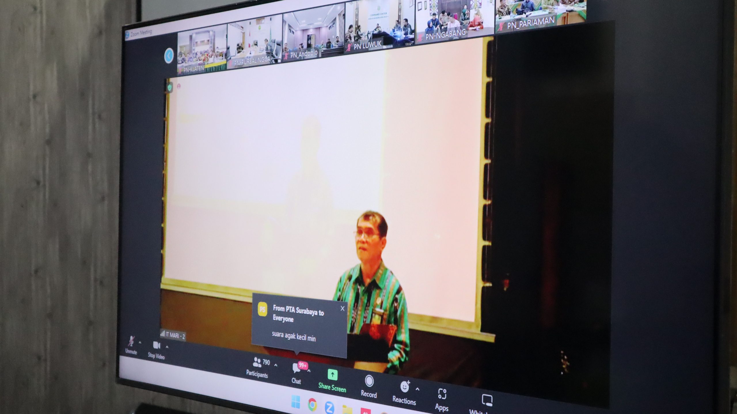 Ketua Pengadilan Negeri Nanga Bulik, Hakim dan Panitera Pengadilan Negeri Nanga Bulik mengikuti Pembinaan Teknis dan Administrasi Yudisial Oleh Para Pimpinan Mahkamah Agung RI secara Virtual di Ruang Sidang Cakra Pengadilan Negeri Nanga Bulik.