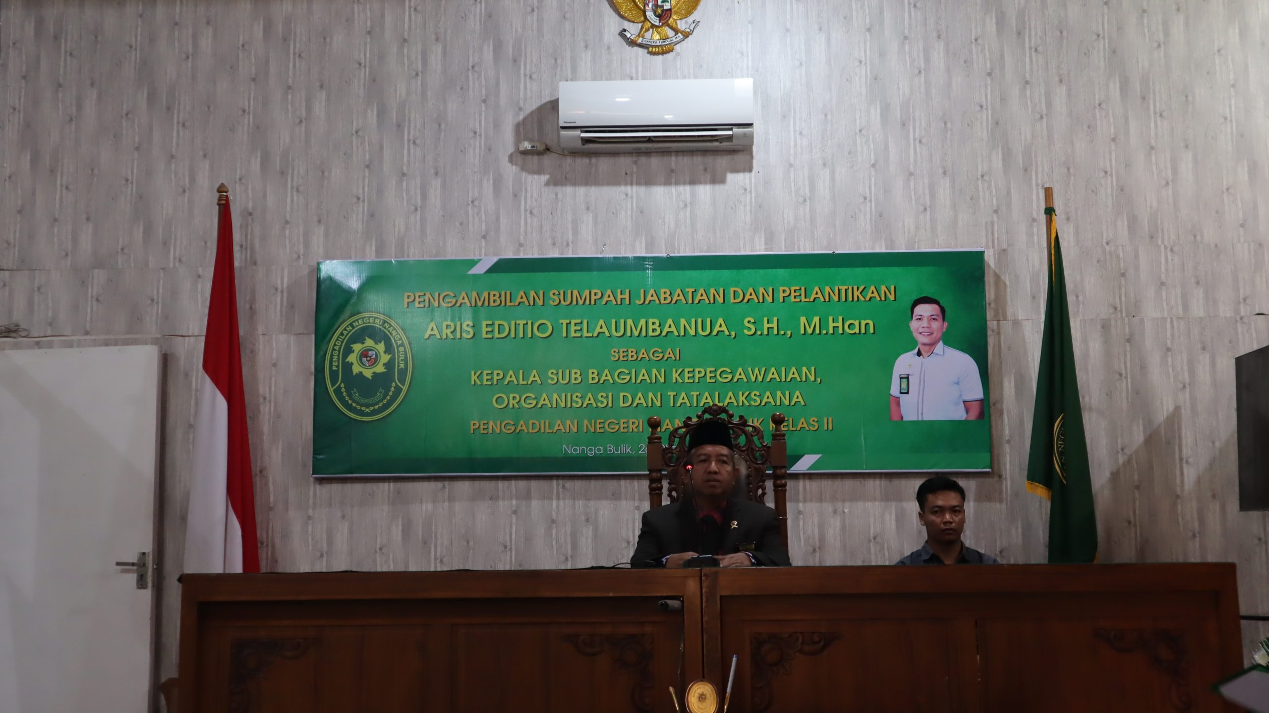Nanga Bulik, 26 Oktober 2023 | PENGAMBILAN SUMPAH JABATAN DAN PELANTIKAN ARIS EDITIO TELAUMBANUA, S.H., M.HAN SEBAGAI KEPALA SUB BAGIAN KEPEGAWAIN, ORGANISASI DAN TATALAKSANA PADA PENGADILAN NEGERI NANGA BULIK