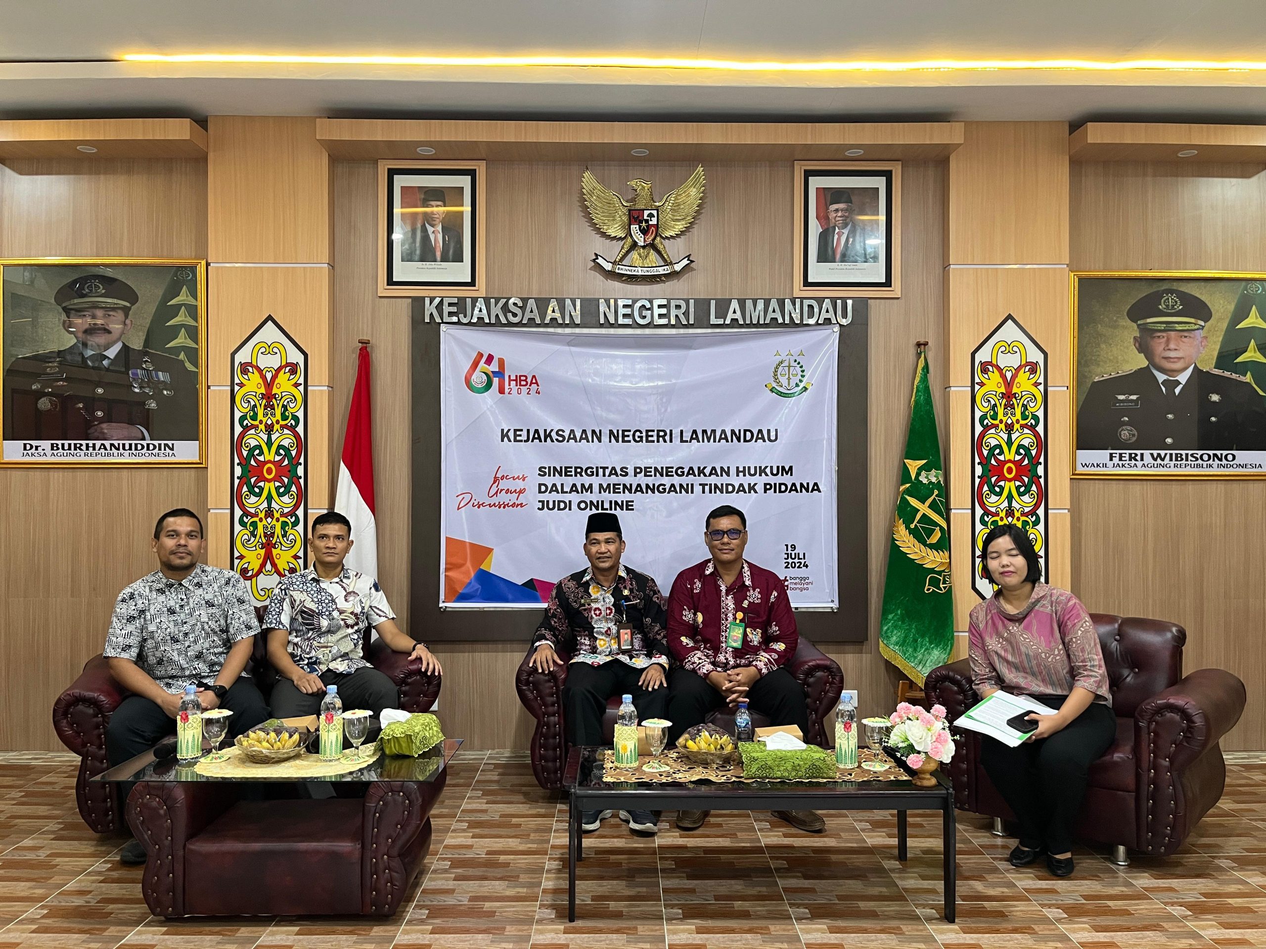 Acara Focus Group Discussion (FGD) Dalam Rangka Hari Bakti Adhyaksa Ke-64 Tahun 2024, Pengadilan Negeri Nanga Bulik diwakili Oleh Panitera Muda Pidana Bapak Junipar Munte, S.H. sebagai Narasumber untuk memberikan materi yang bertemakan tentang Sinergitas Penegakan Hukum dalam Menangani Tindak Pidana Judi Online. hadir pula Narasumber yang lain yakni Kepala Dinas Pendidikan dan Kebudayaan Kabupaten Lamandau Bapak H. Abdul Kohar, S.Pd., M.Pd dan Kepala Satuan Reserse Kriminal Polres Lamandau Bapak AKP. Eka Palti Arie Putra Hutagaol, SIK.