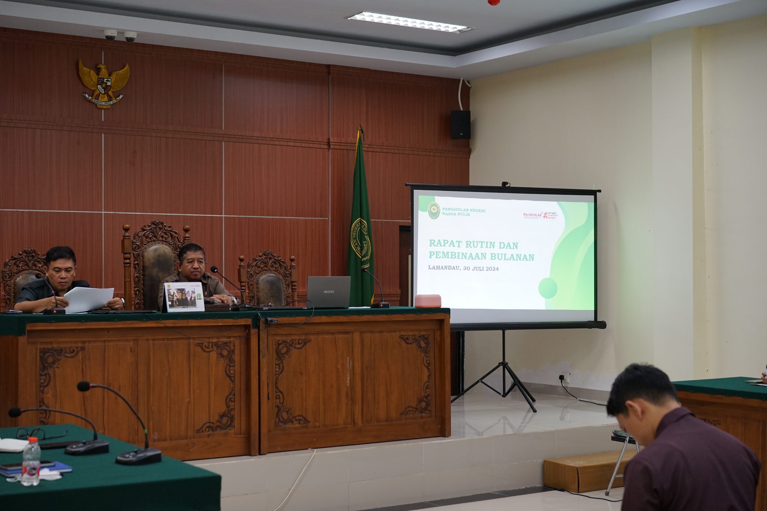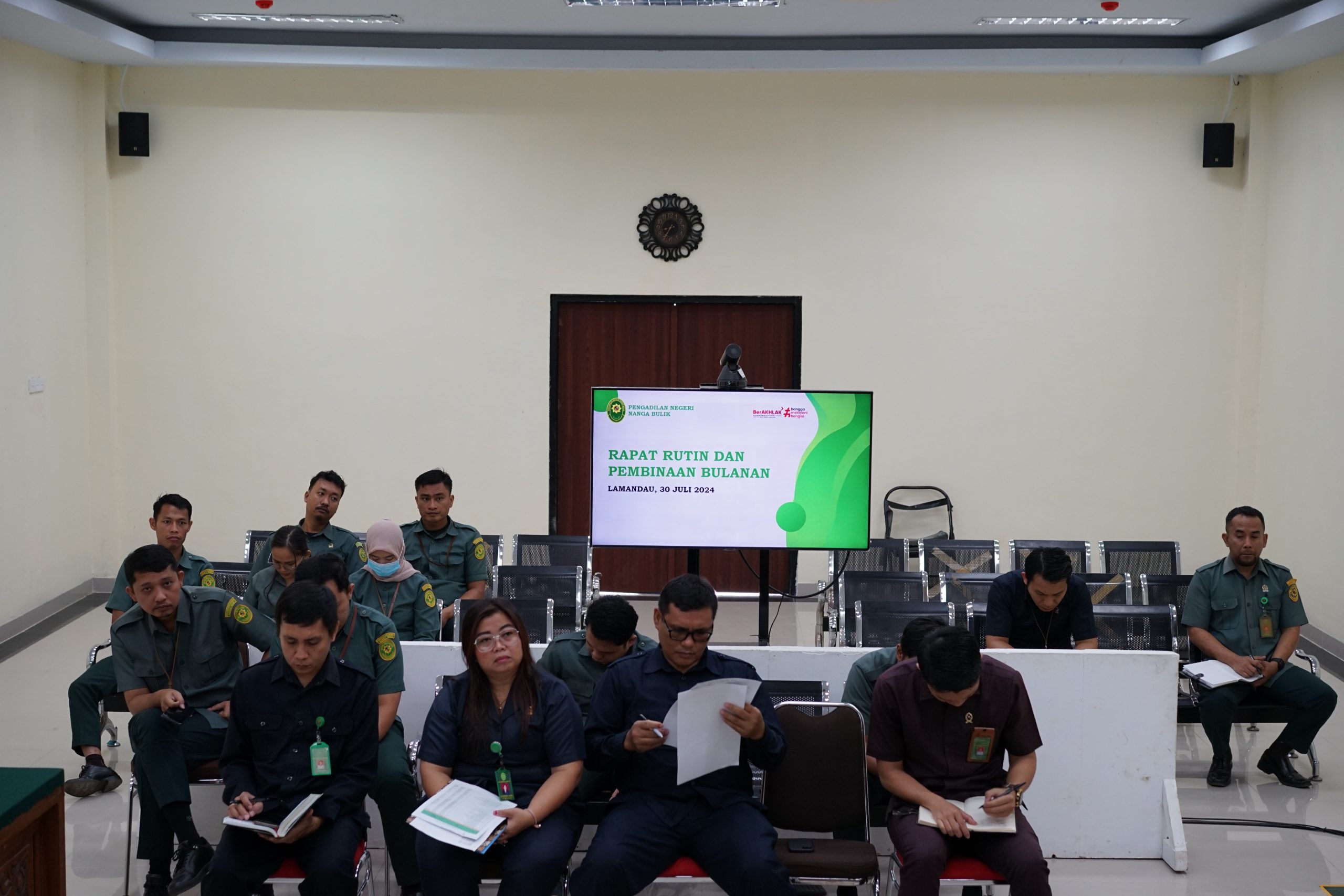 Pengadilan Negeri Nanga Bulik menyelenggarakan Rapat Rutin Bulan Juli 2024 yang dipimpin Langsung oleh Ketua Pengadilan Negeri Nanga Bulik, Bapak Achmad Soberi, S.H., M.H dan diikuti oleh Wakil Ketua Pengadilan Negeri Nanga Bulik Bapak Evan Setiawan Dese, S.H dan Para Hakim, Panitera, Sekertaris, Pegawai dan PPNPN Pengadilan Negeri Nanga Bulik.