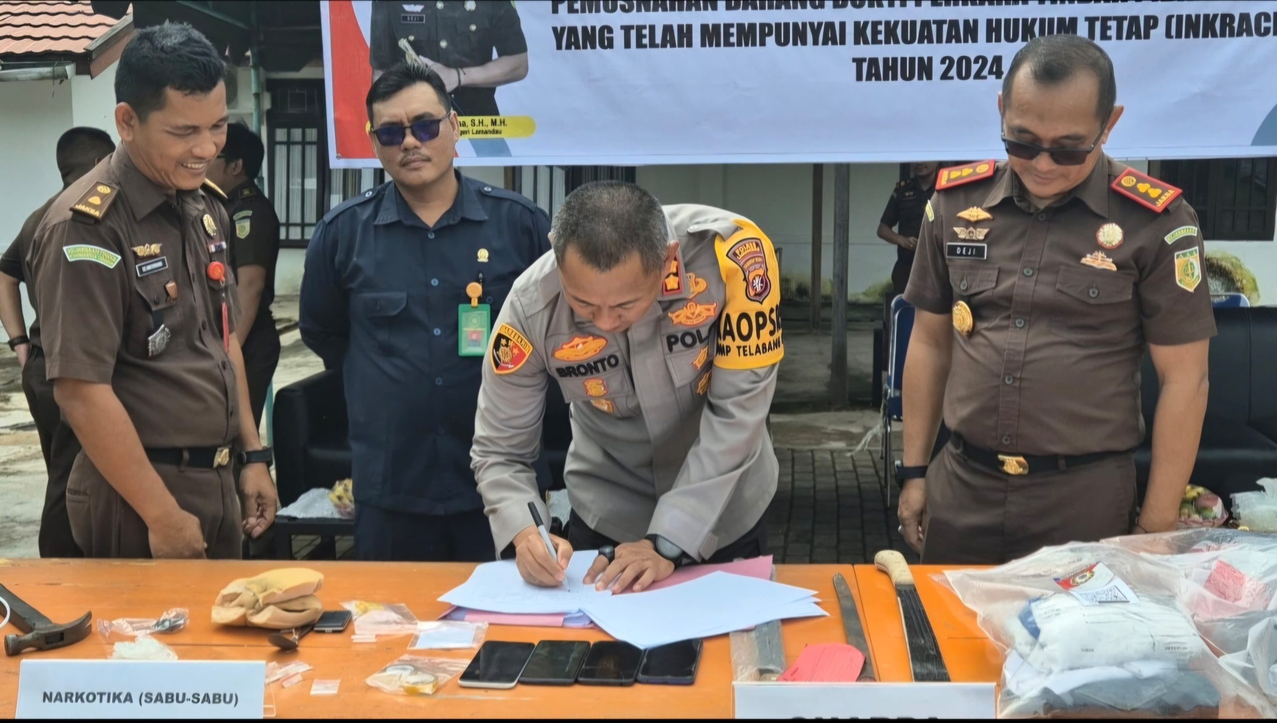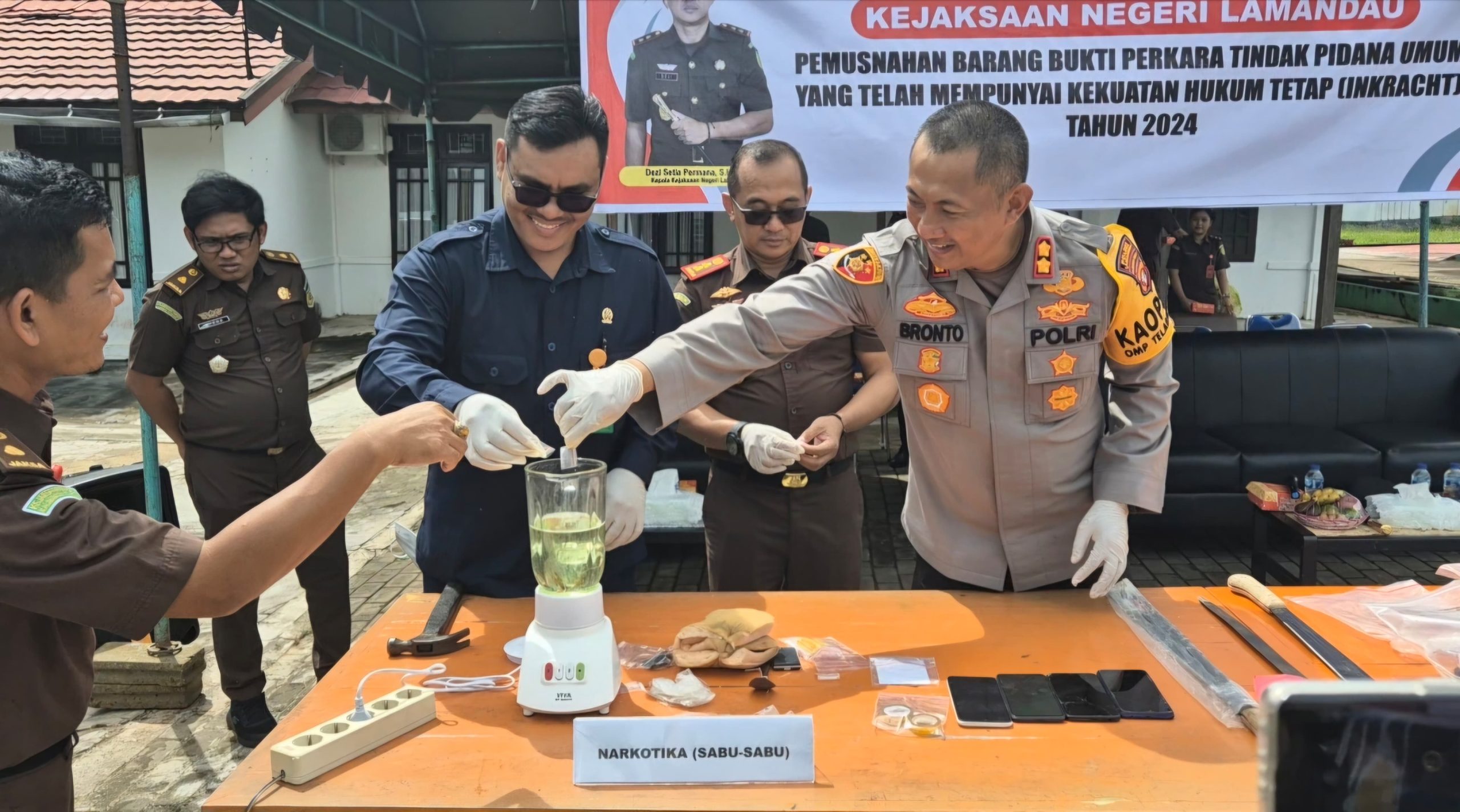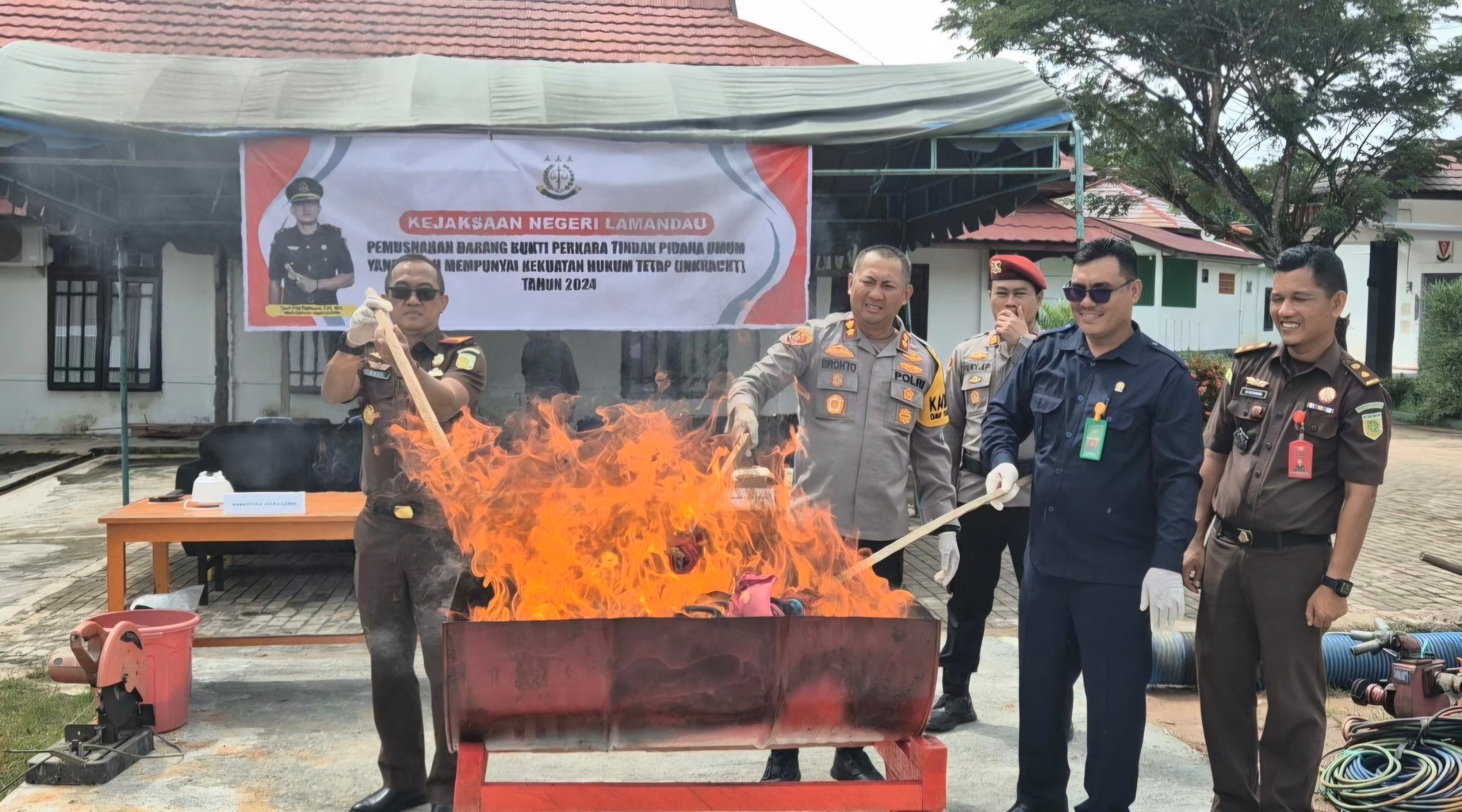 Bertempat di Halaman Kantor Kejaksaan Negeri Lamandau, Pengadilan Negeri Nanga Bulik yang diwakili oleh Panitera Muda Pidana Junipar Munte, S.H. bersama unsur Forkompinda Kabupaten Lamandau diantaranya hadir Kapolres Lamandau AKBP Bronto Budiono, SIK mengikuti kegiatan pemusnahan barang bukti tindak pidana Narkotika, tindak pidana Pertambangan, tindak pidana Orang dan Harta benda dan tindak pidana umum biasa lainnya berdasarkan Putusan Pengadilan Negeri Nanga Bulik yang telah berkekuatan hukum tetap (inkracht) yang amarnya memerintahkan agar barang bukti dimusnahkan. Dalam sambutannya Kepala Kejaksaan Negeri Lamandau Dzi Setiapermana, S.H, M.H menjelaskan bahwa kegiatan pemusnahan barang bukti merupakan tahapan akhir dari penanganan perkara Pidana. Jaksa sebagai penegak hukum memiliki kewenangan untuk melaksanakan eksekusi pidana sesuai dengan prosedur yang berlaku.