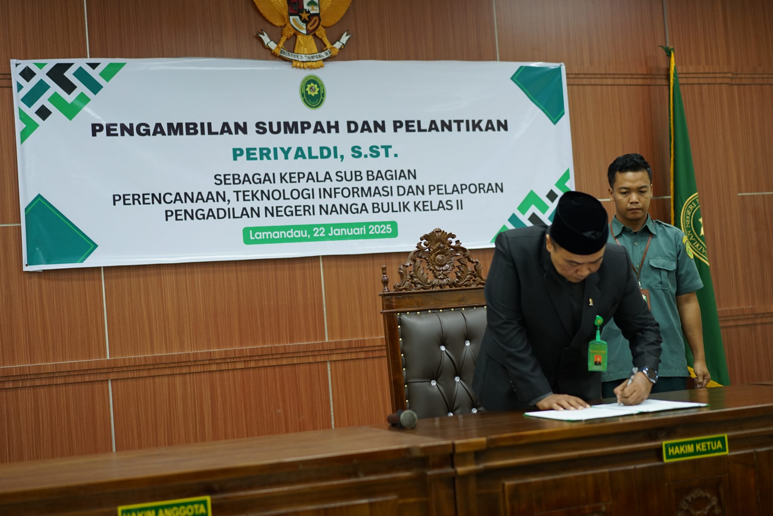 Lamandau, 22 Januari 2025 | Pengambilan Sumpah Jabatan dan Pelantikan KEPALA Sub Bagian Perencanaan, Teknologi Informasi dan Pelaporan PERIYALDI, S.ST. pada Pengadilan Negeri Nanga Bulik