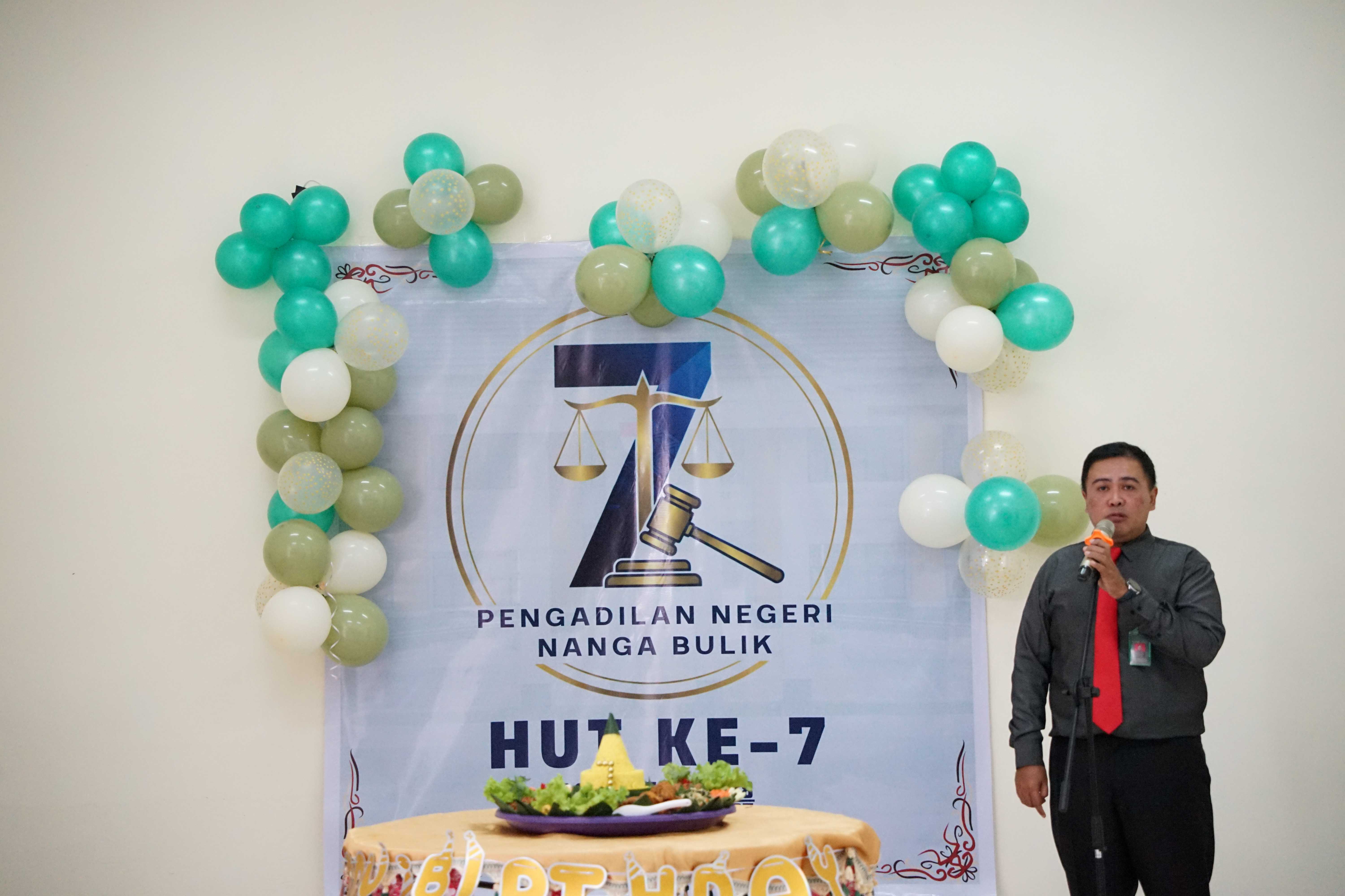 Pengadilan Negeri Nanga Bulik merayakan Hari Ulang Tahun ke-7 berdirinya lembaga peradilan tersebut dengan menggelar acara peringatan sederhana namun penuh makna.Perayaan HUT kali ini mengusung tema “Satukan Tekad dan Semangat serta Tingkatkan Integritas demi Terwujudnya Pengadilan Negeri Nanga Bulik yang Agung”. Acara yang berlangsung dikantor Pengadilan Negeri Nanga Bulik dihadiri oleh para Hakim, Sekretaris, Pejabat Struktural, Staf, PPPK, Pegawai Pemerintah Non-Pegawai Negeri (PPNPN) dan Dharmayukti Karini Cab. Nanga Bulik. YM.
