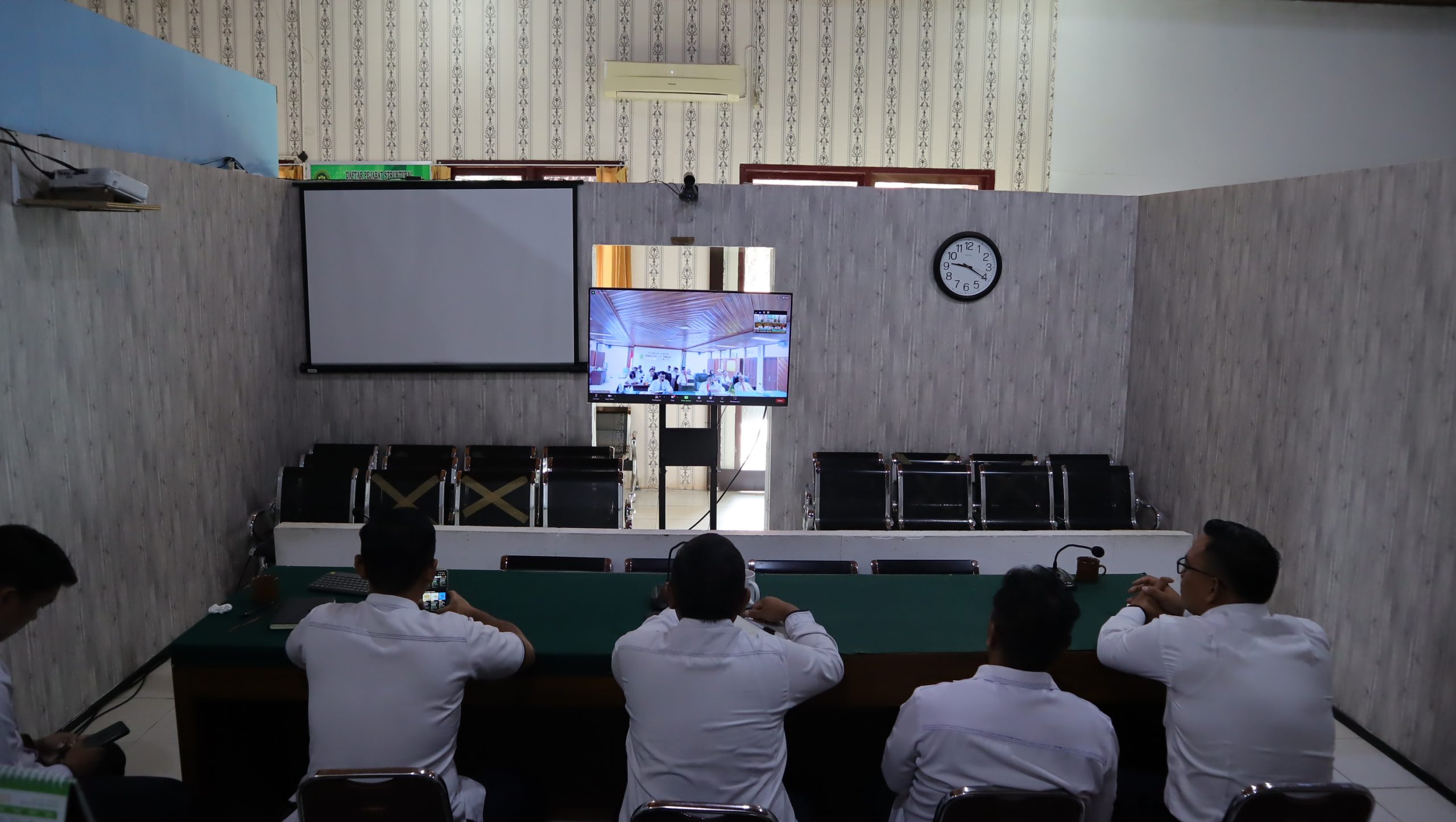 Ketua Pengadilan Negeri Nanga Bulik didampingi, para hakim, panitera dan sekretaris mengikuti acara Pembinaan oleh Bapak Ketua Pengadilan Tinggi Palangkaraya terhadap Ketua, Wakil Ketua, para Hakim, Panitera dan Sekretaris se-wilayah Hukum Kalimantan Tengah melalui zoom meeting yang bertempat di Ruang Cakra.