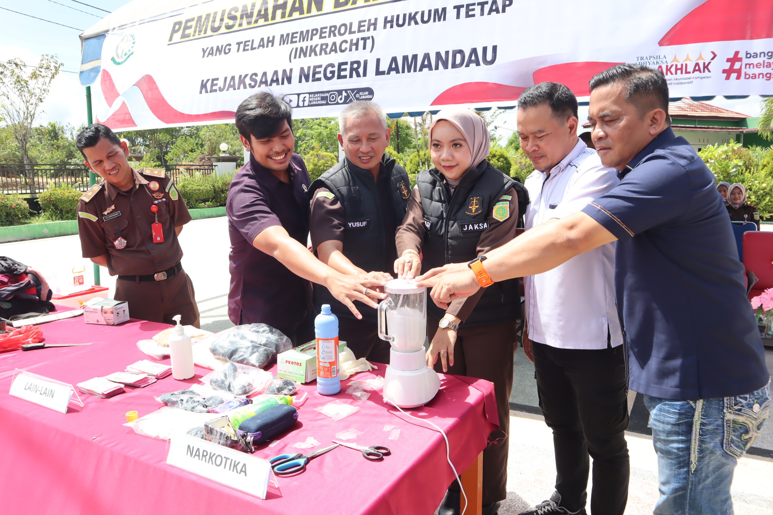 Ketua Pengadilan Negeri Nanga Bulik yang di wakili oleh Hakim Pengadilan Negeri, Bapak DWI MARCH STEIN SIAGIAN, S.H.,M.H. menghadiri Acara Pemusnahan Barang Bukti bertempat di Kejaksaan Negeri Lamandau.