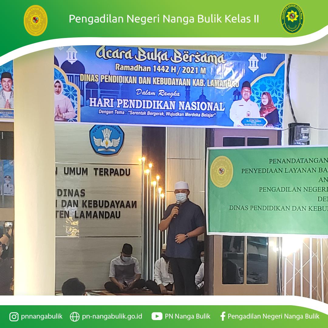 Setelah itu acara dilanjutkan dengan penandatanganan perjanjian kerja sama/MOU antara Pengadilan Negeri Nanga Bulik Kelas II oleh Bapak Wisnu Kristiyanto, S.H., M.H., dengan Dinas Pendidikan dan Kebudayaan Kabupaten Lamandau oleh Bapak H. Abdul Kohar, S.Pd dan Bupati Lamandau Bapak H. Hendra Lesmana sebagai turut mengetahui.