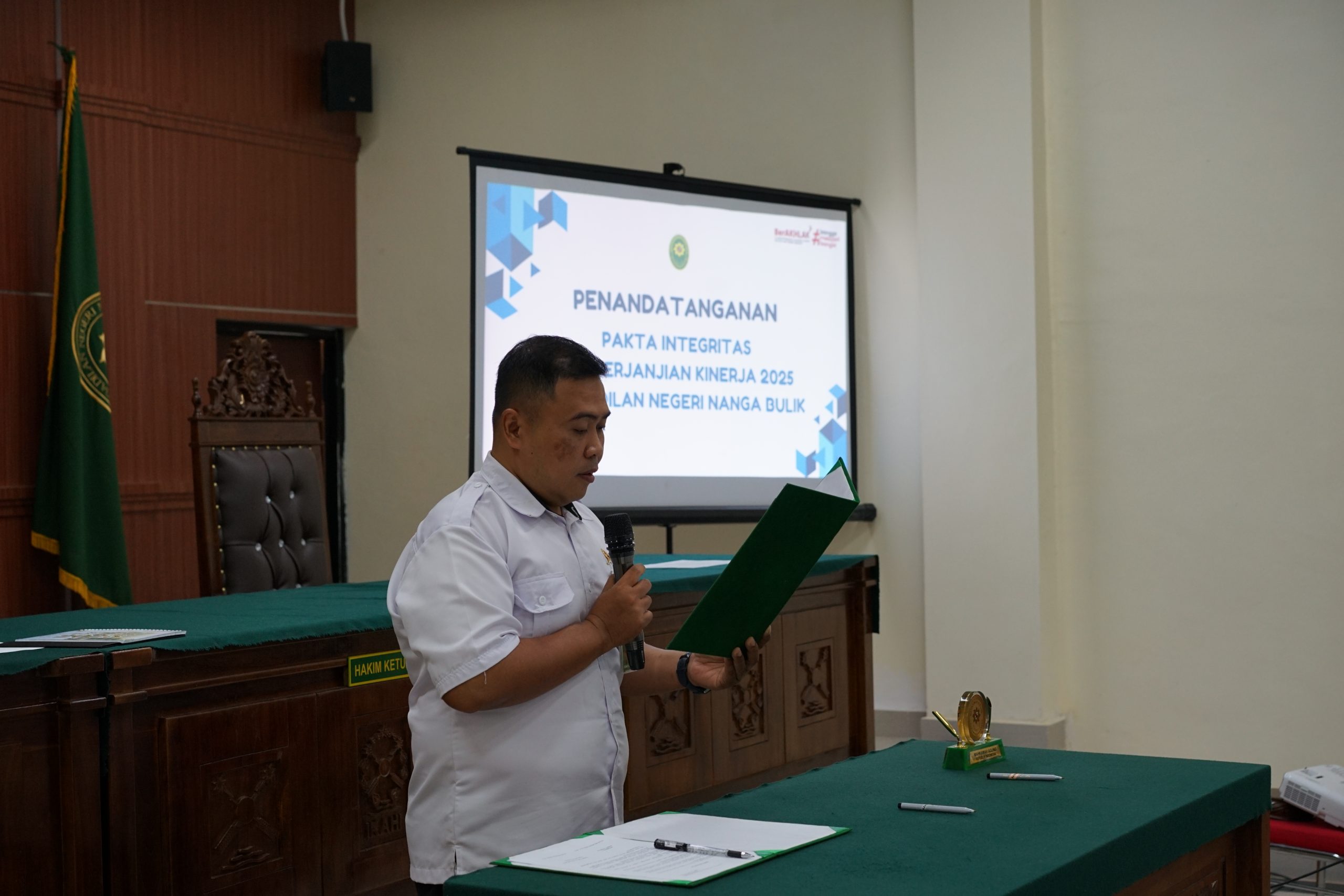Bertempat di Ruang Sidang Utama Pengadilan Negeri Nanga Bulik telah Mengadakan Kegiatan Penandatanganan Pakta Integritas dan Perjanjian Kinerja Tahun 2025 yang di ikuti oleh Ketua Pengadilan Negeri Nanga Bulik, Hakim, Panitera, Sekretaris, Pegawai dan PPNPN. Pakta Integritas dan Perjanjian Kinerja Tahun 2025 Dalam Rangka Mewujudkan Manajemen Pemerintah yang Efektif, Transparan, dan Akuntabel yang Berorientasi Pada Hasil.