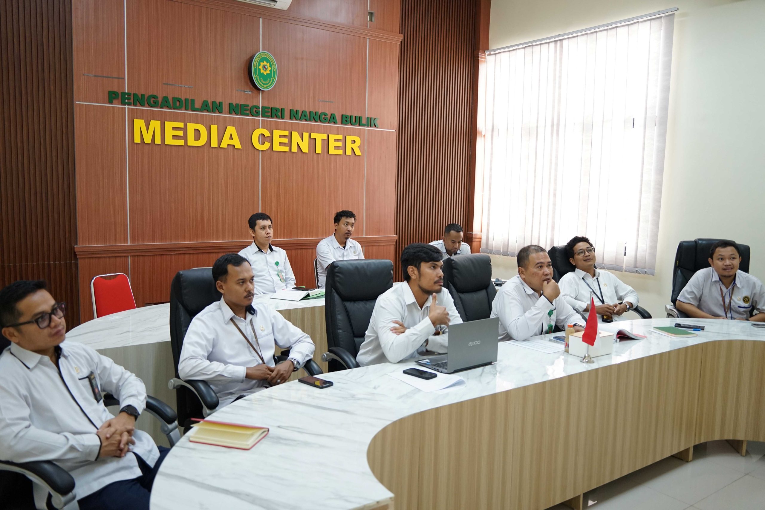 YM Ketua Pengadilan Negeri Nanga Bulik, Bapak Evan Setiawan Dese, S.H., M.H. bersama para Hakim, para Panmud, Panitera Pengganti dan Juru Sita Pengadilan Negeri Nanga Bulik mengikuti Pertemuan Rutin dan Sarasehan Interaktif Badan Peradilan Umum (Perisai Badilum) episode Ke-11 secara Daring di Media Center Pengadilan Negeri Nanga Bulik.