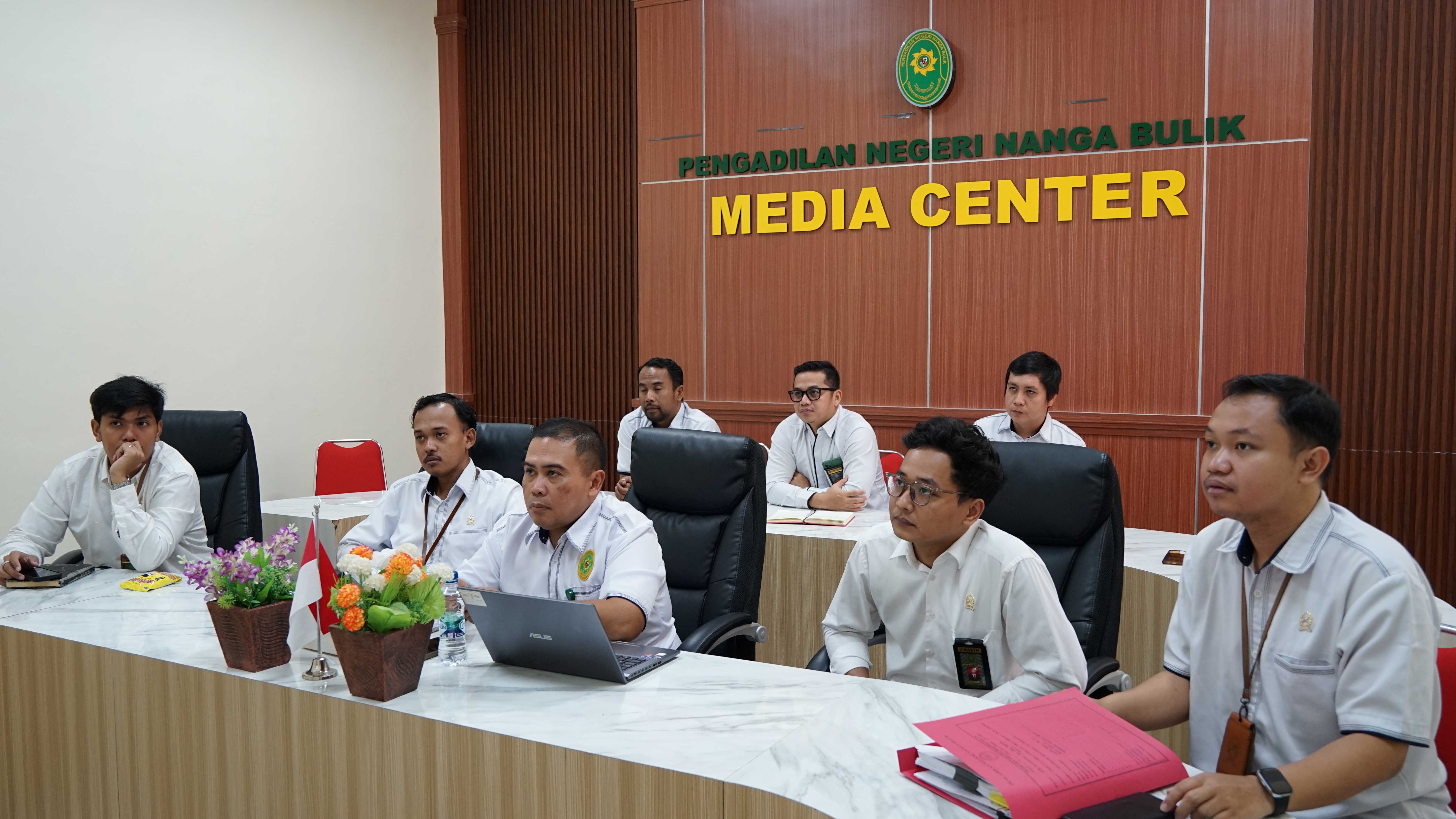 YM Ketua Pengadilan Negeri Nanga Bulik, Bapak Evan Setiawan Dese, S.H., M.H. Bersama Para Hakim, Panitera dan Para Panmud Pengadilan Negeri Nanga Bulik mengikuti kegiatan Pertemuan Rutin Sarasehan Interaktif (Perisai) Episode ke-13 dengan topik Pengakuan Bersalah, Keadilan Restoratif, dan Pemaafan Hakim di Ruang Media Center secara daring.