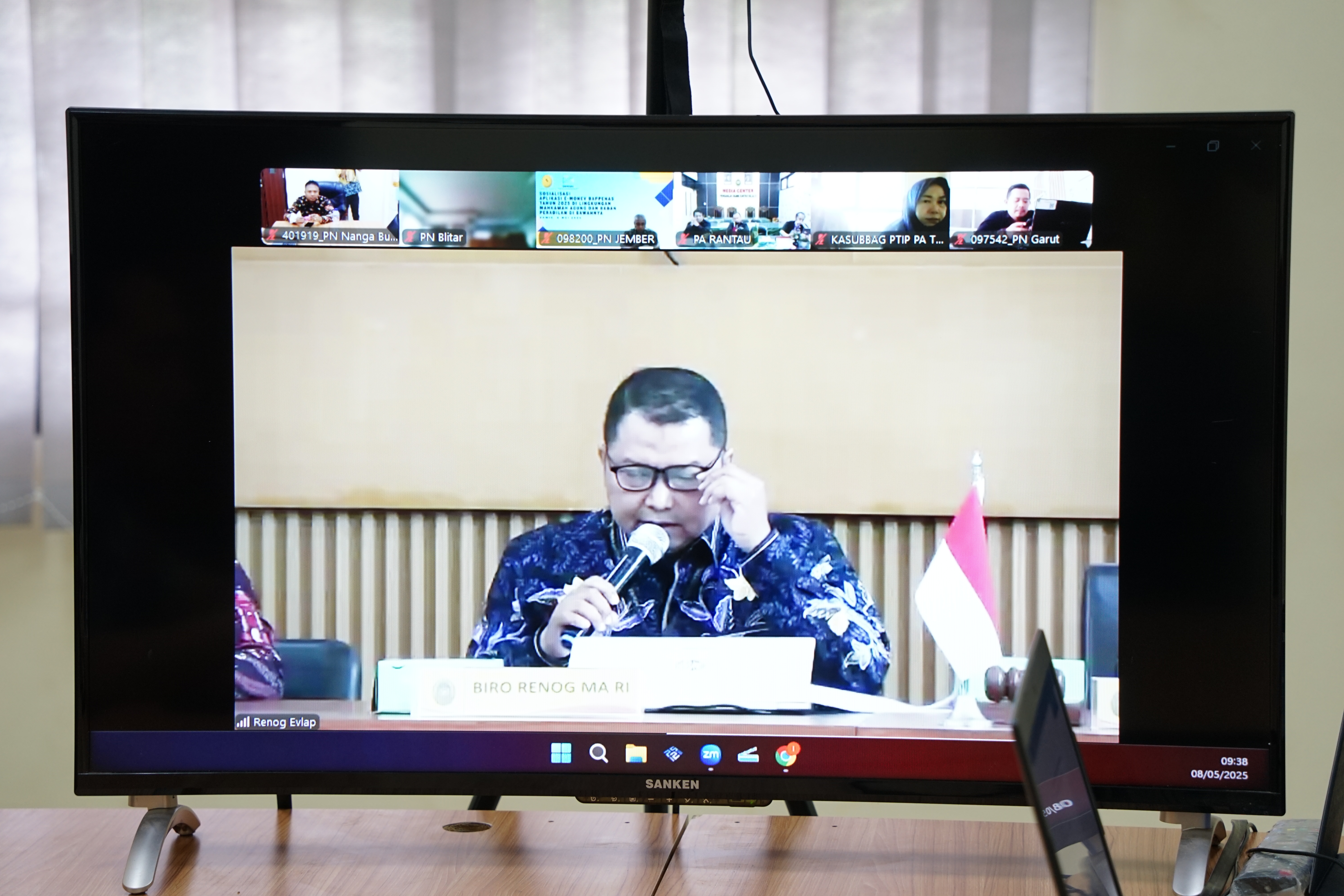 Sekretaris Pengadilan Negeri Nanga Bulik Bapak Aang Sutopo, S.H. mengikuti kegiatan Sosialisasi aplikasi e-Monev Bappenas 2025 yang diselenggarakan secara daring melalui Aplikasi Zoom Meeting. Materi yang disosialisasikan terkait Pemantauan, Evaluasi, dan Pengendalian Pelaksanaan Rencana Kerja Kementerian/Lembaga (Renja K/L) Triwulan I Tahun Anggaran 2025 melalui aplikasi e-Monev Bappenas.