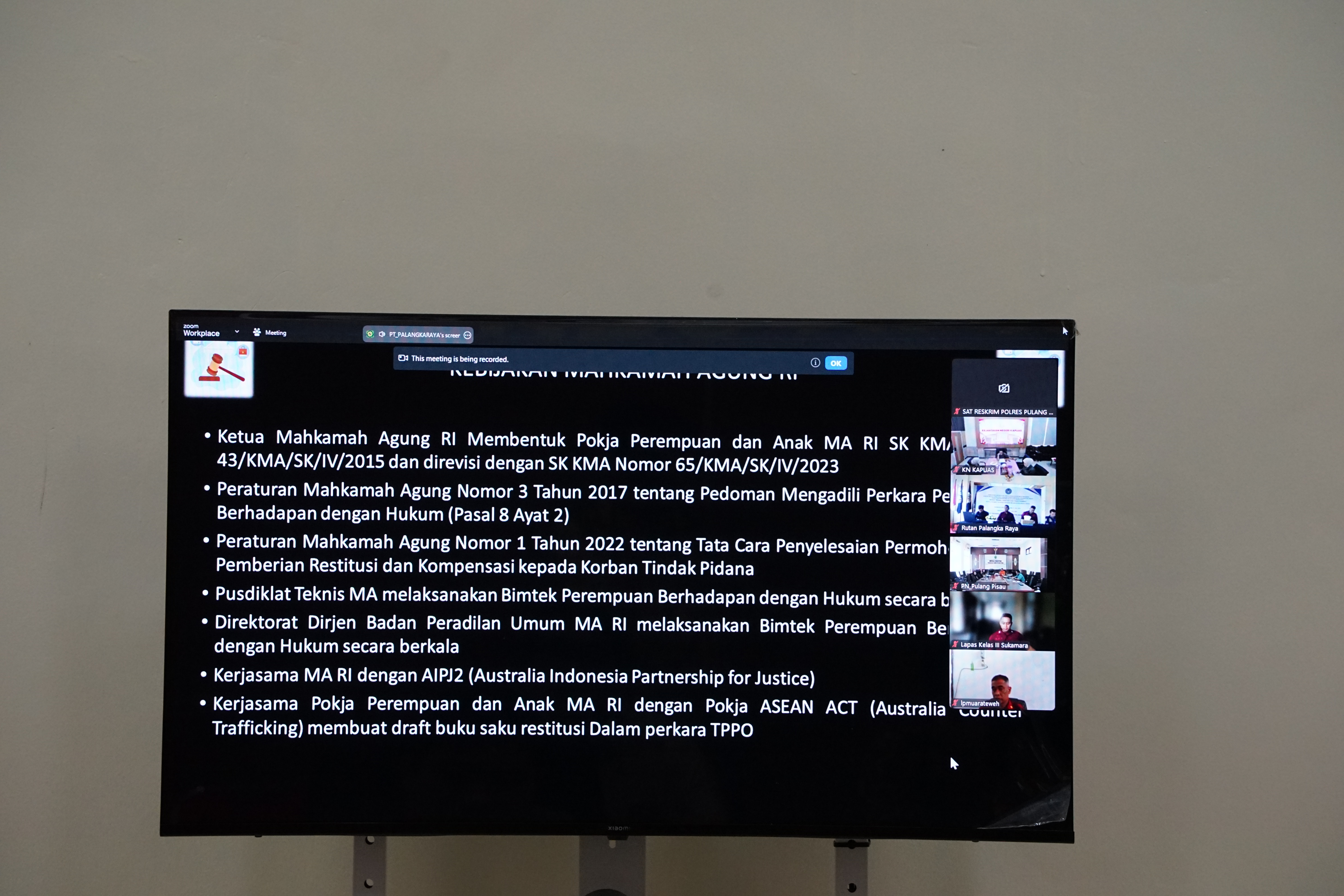 Bertempat diruang Media Center Pengadilan Negeri Nanga Bulik Hakim beserta Panitera, Panitera Muda dan Panitera Pengganti Pengadilan Negeri Nanga Bulik, mengikuti kegiatan Sosialisasi Kebijakan dan Peraturan Mahkamah Agung oleh Pengadilan Tinggi Palangkaraya secara daring. Kegiatan ini juga diikuti oleh Kejaksaan Negeri, Kepolisian, dan Lembaga Permasyarakatan di seluruh Wilayah Kalimantan Tengah.