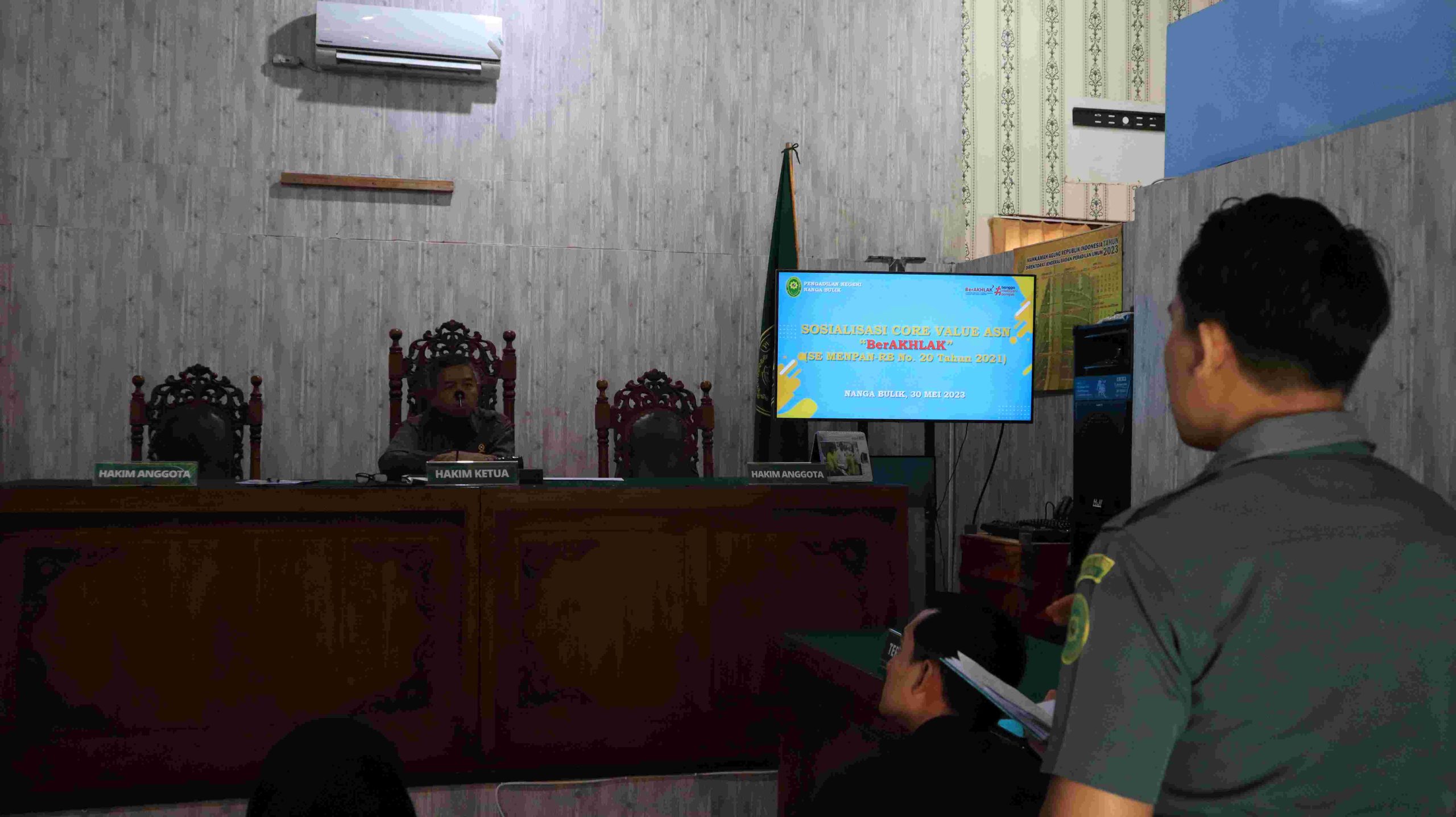 Dalam rangka pelaksanaan Penilaian Mandiri Pembangunan Zona Integritas menuju Wilayah Bebas dari Korupsi (WBK) dan Wilayah Birokrasi Bersih Melayani (WBBM), Pengadilan Nanga Bulik mengadakan sosialisasi Core Values dan Employer Branding Aparatur Sipil Negara (ASN) pada Selasa, 30 Mei 2023 yang disampaikan langsung oleh Ketua Pengadilan Negeri Nanga Bulik Bapak Achmad Soberi, S.H., M.H di ruang Sidang Cakra Pengadilan Negeri Nanga Bulik.